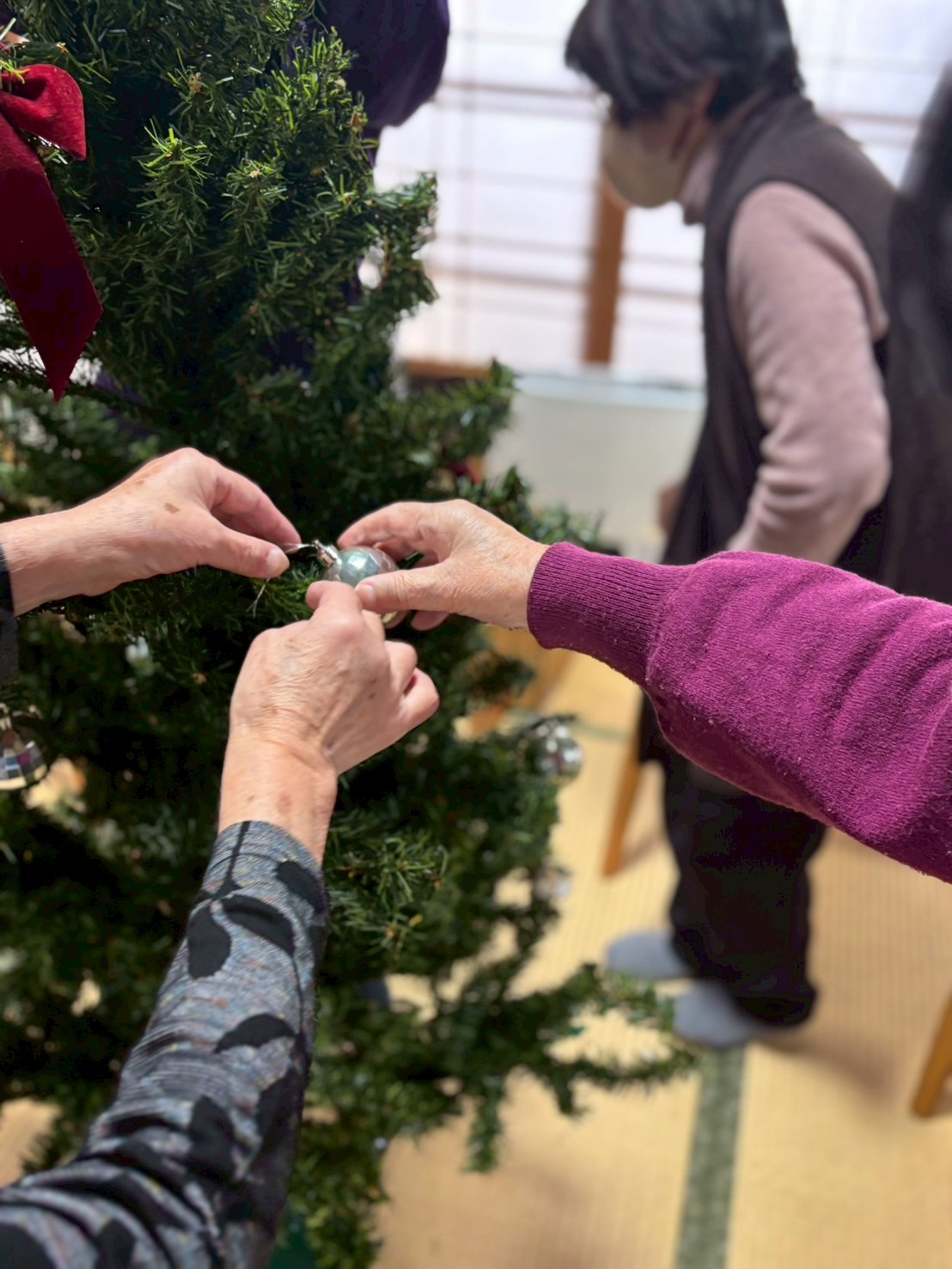 皆さんでとても丁寧に飾りつけして下さって、綺麗なツリーが完成です🎄