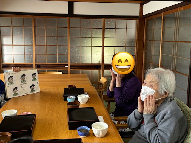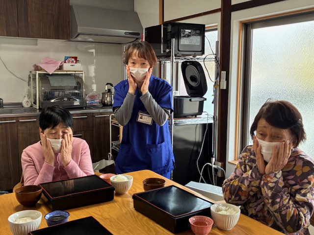 昼食前は誤嚥防止のためしっかり嚥下体操をします。